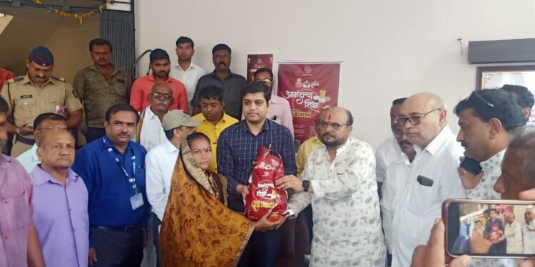 जळगाव राजमुद्रा | शासनाने राज्यातील सार्वजनिक वितरण व्यवस्थेतील अंत्योदय आणि प्राधान्य कुटूंब योजनेच्या लाभार्थ्यांना आगामी दिवाळी सणानिमित्त नियमित अन्नधान्याव्यतिरिक्त प्रति शिधापत्रिका 1 किलो रवा, 1 किलो साखर, 1 किलो चना डाळ आणि 1 लिटर पामतेल या 4 शिधाजिन्नसांचा संच रू. 100/- मात्र या दराने वितरीत करण्याचे निर्देश दिले आहेत. या अनुषंगाने जळगाव जिल्ह्यातील अंत्योदय आणि प्राधान्य कुटूंब योजनेच्या लाभार्थ्यांना दिवाळी किट वितरणाचे वाटप जिल्हा प्रशासनाकडून सुरू करणेत आले आहे.