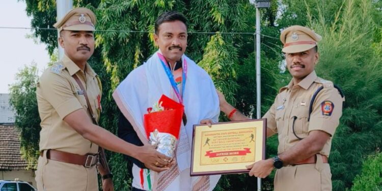 जळगाव राजमुद्रा | नुकत्याच गांधीनगर ,गुजरात या ठिकाणी संपन्न झालेल्या नॅशनल गेम्स मध्ये सर्वच क्रीडा प्रकारात महाराष्ट्राच्या संघाने उल्लेखनीय कामगिरी करत पदक प्राप्त केले त्यात नव्याने समाविष्ट करण्यात आलेल्या सॉफ्टबॉल क्रीडा प्रकारात महाराष्ट्राच्या पुरुष संघाने सुवर्णपदक प्राप्त करत एक नवा इतिहास प्रस्थापित केला त्या महाराष्ट्र संघाचे कर्णधार पद जळगाव जिल्हा पोलीस दलात कार्यरत असलेले पोलिस अंमलदार जयेश यशवंतराव मोरे यांनी केले. त्यांनी केलेल्या उल्लेखनीय कामगिरीसाठी त्यांचे परेडवर सत्कार करून माननीय पोलीस अधीक्षक एम राजकुमार सर,होम उपविभागीय पोलीस अधिकारी गावित,राखीव पोलीस निरीक्षक सोनवणे ,राखीव पोलीस उपनिरीक्षक पवार व गेम इन्चार्ज सम्रत वाघ यांनी त्यांचे कौतुक करून पुढील वाटचालीसाठी शुभेच्छा दिल्या.