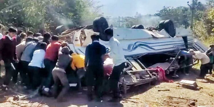 न्यूज 18 च्या वृत्तानुसार, अपघातात 15 विद्यार्थ्यांचा मृत्यू झाल्याची भीती आहे. यासोबतच अनेक विद्यार्थी जखमी झाल्याचीही बातमी आहे. हा अपघात बिष्णुपूर-खौपुम रोडवर लोंगसाई तुबुंग गावाजवळ घडल्याचे सांगण्यात येत आहे. जखमी विद्यार्थ्यांना उपचारासाठी इंफाळ येथील मेडिसिटी रुग्णालयात नेण्यात आले आहे. अहवालानुसार, आतापर्यंत 22 विद्यार्थ्यांना आणण्यात आले आहे.