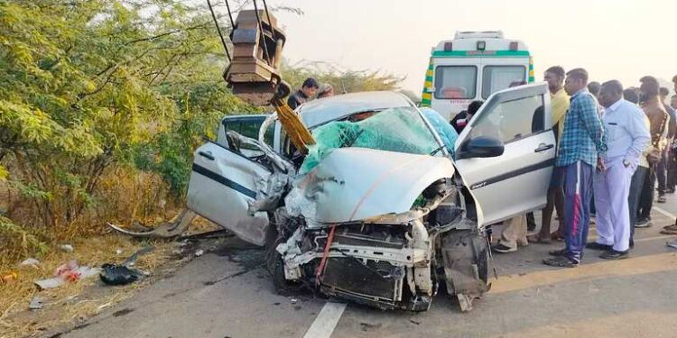 मुंबईहून पारोळा येत असताना वीचखेडे गावानजीक आशिया महामार्गावर सकाळी सात वाजेच्या सुमारास कार व ट्रॅंकरचा अपघात झाला. समोरून भरधाव वेगाने येत असलेल्या टॅंकरने कारला जोरदार धडक दिल्याने यात पारोळा नगरपालिकेचा अभियंता कुणाल सौपुरे (वय ३५, रा. गोंधळ वाडा, पारोळा) व एम. एस. ऑर्थो स्पेशलिस्ट डॉ. निलेश मंगळे (वय ३५, रा. डी. डी. नगर, पारोळा) यांचा जागीच मृत्यू झाला. तर संदीप पवार (वय ३७) हा जखमी झाल्याची माहिती मिळाली आहे.