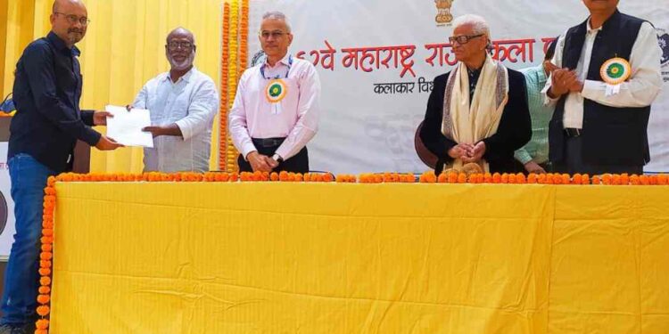 मुंबई : जैन इरिगेशनच्या कला विभागातील चित्रकार विजय जैन यांच्या प्लास्टिक प्रदूषण विषयाचे गांभीर्य अधोरेखित करत, घराबाहेर पडताना आपली कापडी पिशवी सोबत बाळगण्याची आठवण करून देणाऱ्या लक्षवेधी पोस्टर रचनेला महाराष्ट्र राज्य कला संचालनालयाच्या ६२ व्या वार्षिक प्रदर्शनात ५० हजारचे पारितोषिक प्राप्त झाले आहे.