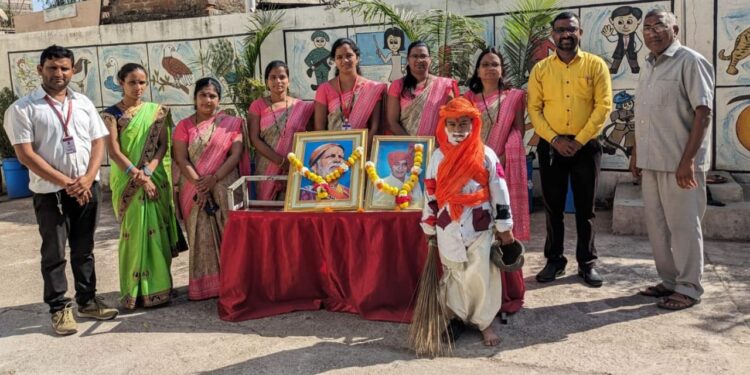संत गाडगेबाबांनी विवेकाच्या खराट्याने गावोगावी फिरून लोकांची मने स्वच्छ केली. साक्षरतेचा प्रचार-प्रसार केला. महाराष्ट्रातील ग्रामीण भागात स्वच्छतेची शिकवण देऊन समाज सुधारणा करणारे ते थोर संत होते, असे प्रतिपादन मुख्याध्यापक मुकेश नाईक यांनी केले. कार्यक्रमाचे सूत्रसंचालन शितल कोळी मॅडम यांनी केले.संत गाडगेबाबा सन्मानार्थ संत गाडगेबाबा शाळा स्वच्छता अभियानाला सुरुवात केली. या अभियाना अंतर्गत शाळा स्वच्छ ठेवणाऱ्या कामगार महिलांचे पुष्पगुच्छ देऊन स्वागत करण्यात आले. शाळेतील विद्यार्थ्यांनी गोपाला गोपाला देवकीनंदन गोपाला भजन गायले. कार्यक्रमाला सर्व शिक्षक उपस्थित होते.