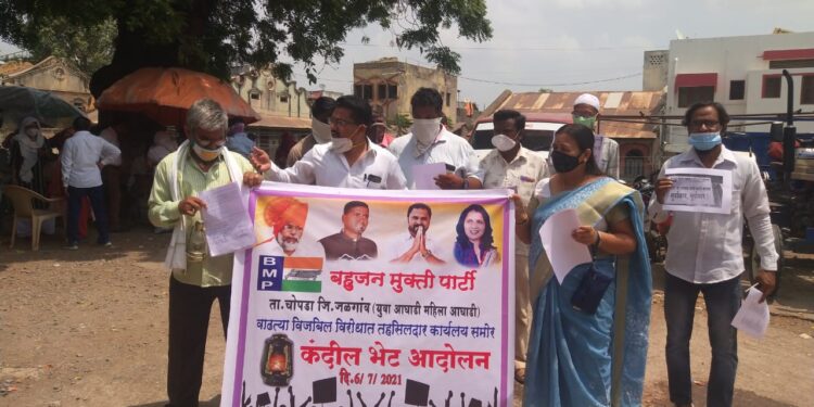दोनशे युनिट पर्यंत वीज बिल माफ करण्यात यावे, मीटर भाडे कपात करण्यात यावे, विजेचा स्थिर आकारावर प्राथमिक भावाप्रमाणे दर आकारणी करावी, सक्तीची वीजबिल वसुली थांबवावी यासह यात इतर मागण्यांचा समावेश आहे. यावेळी जळगाव लोक सभा प्रभारी बहुजन मुक्ती पार्टीचे रवींद्र वाडे, बहुजन क्रांती मोर्चाचे अध्यक्ष सय्यद असगर अली, जिल्हा संघटक भारती वाडे, उपाध्यक्ष बुद्धिस्ट इंटरनेशनल नेटवर्क आधार करंदीकर, गेमा बारेला, नजीर काझी, मुबारक कुरेशी, सुनील केदार आदी उपस्थित होते.