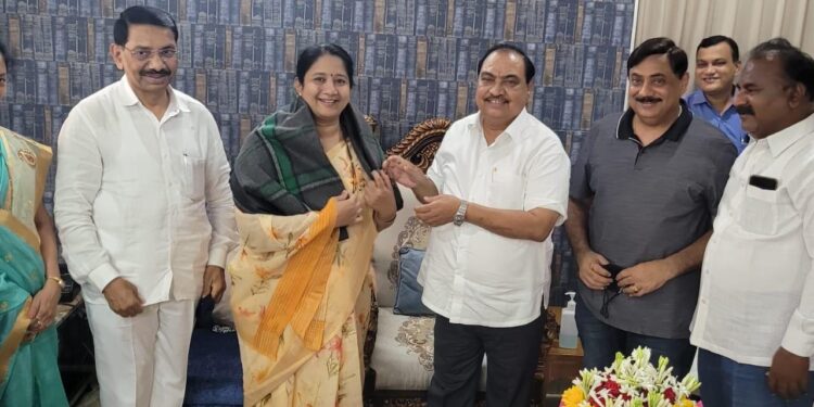 जळगाव राजमुद्रा वृत्तसेवा | नेल्सन मंडेला ॲकॅडमी अमेरिकन युनिव्हर्सिटी कडून माजी नगरसेविका डॉ. सौ अश्विनीताई विनोद देशमुख यांना डॉक्टरेट व नेल्सन मंडेला नोबेल पीस अवॉर्ड 2021 देऊन सन्मान मिळाला म्हणून राष्ट्रवादी काँग्रेसचे नेते एकनाथराव खडसे यांच्या हस्ते शाल पुष्पगुच्छ देऊन सत्कार करण्यात आला.