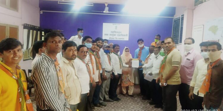 बोदवड राजमुद्रा वृत्तसेवा | बोदवड शहराला पाण्यासाठी २० ते २५ दिवस तातकळत बसावे लागत असून बऱ्याचदा दीड महिना पिण्याचे पाणी मिळत नाही. संभांधित प्रशासन व लोकतिनिधी यांच्या कडून बोदवड वासीयांना ६ दिवसाच्या फरकाने पाणी देण्यासंदर्भात दिवास्वप्न दाखवले जाते. सध्यस्थितीतही भर पावसाळा असतांना बोदवड शहरात मागील २० दिवसांपासून पिण्याचे पाणी आलेले नसल्याने भारतीय जनता पार्टी तर्फे तहसीलदारांना निवेदन सादर करण्यात आले.