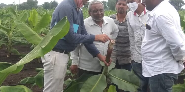 रावेर राजमुद्रा वृत्तसेवा | यावल तालुक्यातील लागवड केलेल्या केळी बागांवर सीएमव्ही रोगाच्या (कुकुंबर मोझॅक व्हायरस) प्रादुर्भावाची सुरुवात होत असल्याचे कृषी तज्ज्ञाच्या पाहणीत आढळून आले आहे. रावेर तालुक्यातील रसलपूर, चिनावल, ऐनपूर, रोझोदा, कळमोदा या ठिकाणी तर यावल तालुक्यातील न्हावी, बोरखेडा या गावांच्या शेती शिवारात या रोगाची प्राथमिक अवस्थेतील लक्षणे आढळून आली आहेत. तर कोचुर, पुनखेडा, रसलपूर, मुंजलवाडी, कुसूंबा या ठिकाणी केळीवरील इर्व्हिनिया रॉट या रोगाचा प्रादुर्भाव दिसून आल्याची माहिती पाल कृषी विज्ञान केंद्राच्या तज्ञानी दिली आहे.