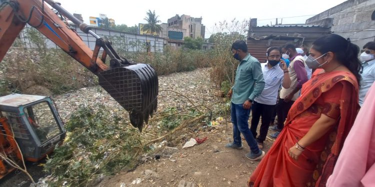 पावसाळ्याच्या पार्श्वभूमीवर मान्सूनपूर्व कामांना गती देण्याच्या सूचना महापौर जयश्री महाजन यांनी दिल्या होत्या. महापौरांच्या सुचनेनंतर मनपा प्रशासन कामाला लागले असून जेसीबीच्या साहाय्याने नालेसफाई करण्यास सुरुवात करण्यात आली आहे. मेहरूण परिसर आणि श्रद्धा कॉलनीतील नाले सफाईच्या कामाची महापौर जयश्री महाजन यांनी पाहणी केली. यावेळी उपमहापौर कुलभूषण पाटील, प्रभाग समिती अधिकारी आणि आरोग्य विभागाचे कर्मचारी उपस्थित होते.