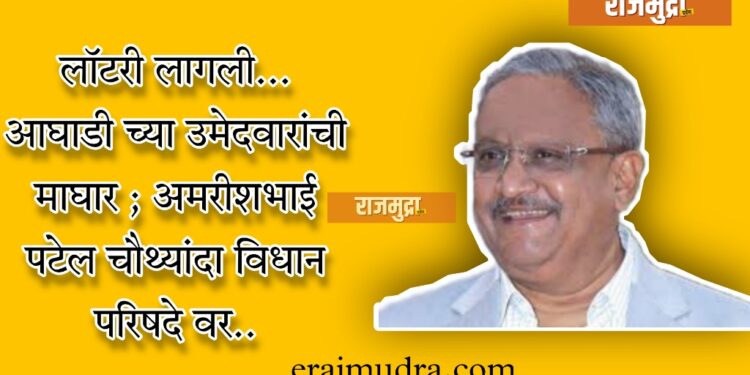 धुळे राजमुद्रा दर्पण । भाजप आणि काँग्रेस मध्ये साटंलोटं झाल्याने धुळे व नंदुरबार स्थानिक स्वराज्य संस्थेची विधान परिषद निवडणूक बिनविरोध होणार आहे. त्यामुळे ते सलग चौथ्यांदा विधान परिषदेत जाणार आहेत. कोल्हापुरमध्ये सतेज पाटील यांना बिनविरोध निवडून देण्यासाठी भाजपच्या मुंबई व धुळ्यातील जागा बिनविरोध करण्यावर दोन्ही पक्षांनी शिक्कामोर्तब केलं. त्यामुळे अमरिश पटेल यांच्या विजयाचा मार्ग मोकळा झाला आहे.