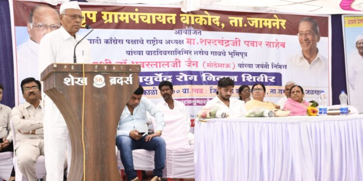 जळगाव राजमुद्रा वृत्तसेवा – जैन इरिगेशनच्या भवरलाल अँड कांताबाई जैन फाउंडेशनतर्फे वाकोद गांवपातळीवरचा आदर्श शेतकरी, आदर्श गृहिणी पुरस्कार दर 12 डिसेंबरला प्रदान होईल अशी घोषणा भवरलाल अँड कांताबाई जैन फाउंडेशनचे विश्वस्त कविवर्य ना. धों. महानोर यांनी केली. उत्तम शेती करणारा शेतकरी तसेच उत्तम संसार करणाऱ्या गृहिणीची निवड पुरस्कारासाठी केली जाईल. निपक्ष, पारदर्शक निवड करण्यासाठी पाच सदस्यीय निवड समिती असेल असेही महानोर म्हणाले. वाकोद येथील थोर सुपुत्र भवरलालजी जैन यांच्या ८४ व्या जयंती व शरद पवार यांच्या ८१ व्या वाढदिवसाच्या औचित्याने ग्रामपंचायत तसेच सेवाभावी संस्थेच्यावतीने मोफत आयुर्वेदिक आरोग्य तपासणी शिबिराच्या उद्घाटन प्रसंगी ते बोलत होते.          यावेळी कार्यक्रमाच्या अध्यक्ष स्थानी जि प सदस्या प्रमिलाताई पाटिल होत्या याप्रसंगी व्यासपीठावर जिल्हा नियोजन समिति सदस्य संजय गरुड जिल्हा बैंक संचालक नाना पाटिल वैद्य वेदांत सुरपाटने सौ सविता सुरपाटने प्राचार्य डी आर चौधरी प्राचार्य व्ही के चौधरी विनोदसिंहजी राजपूत पांडुरंग पाटिल पोलिस पाटिल संतोष देठे राजु कुमावत फारुख शेख उपस्थित होते         कार्यक्रमाचे प्रास्ताविक विलास जोशी यांनी केले यावेळी पोलिस पाटिल संतोष देठे सोपान गाढवे जैन चरिटीज चे किशोर कुळकर्णी यांनी मनोगत व्यक्त केले        यावेळी वाकोद सह परिसरातील नागरिकांनी आयुर्वेदिक शिबिराला उत्स्फूर्त प्रतिसाद दिला असून जवळपास 80 ते 90 रुग्नानि आपली मोफत नाड़ी परीक्षण करुण घेतले व् नाममात्र शुल्कात आयुर्वेदिक औषधि घेतली वैद्य वेदांत सुरपाटने यांनी व्याधि पूर्णपणे बरा होण्याची खात्री दिली तसेच जिल्ह्यात प्रथम आयुर्वेदिक शिबिराचे आयोजन केल्या बद्दल ग्रामपंचायतचे आभार मानले           कार्यक्रमाचे सूत्रसंचलन राजु लोडते सर यांनी केले आभार महावीर गुळेचा यांनी मानले
