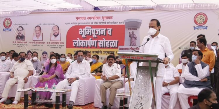 भुसावळ नगरपालिकेतर्फे एकूण 11.41 कोटी रुपयांच्या विकासकामांचे लोकार्पण आणि 6.41 कोटी रुपयांच्या विकासकामांचे भूमीपुजन उपमुख्यमंत्री अजित पवार यांच्या हस्ते आज दुपारी झाले. त्यावेळी ते बोलत होते. यावेळी जळगाव जिल्ह्याचे पालकमंत्री तथा राज्याचे पाणीपुरवठा व स्वच्छता मंत्री गुलाबराव पाटील, खासदार. रक्षाताई खडसे, माजी मंत्री आमदार संजय सावकारे, जिल्हाधिकारी डॉ. अभिजित राऊत, जि.प.चे. मुख्य कार्यकारी अधिकारी डॉ. पंकज आशिया, नगराध्यक्ष रमण भोळे, उपनगराध्यक्ष राजेंद्र नाटकर, मुख्याधिकारी संदीप चिद्रवार उपस्थित होते. माजी मंत्री एकनाथराव खडसे हे कार्यक्रमाच्या अध्यक्षस्थानी होते.