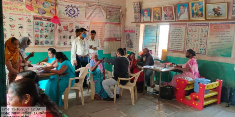 नशिराबाद राजमुद्रा वृत्तसेवा | आज दिनांक १८-१२-२१ रोजी मा. जिल्हाधिकारी जळगाव व मा.जिल्हा आरोग्य अधिकारी जळगाव व मा.तालुका वैद्यकीय अधिकारी जळगाव डॉ संजय चव्हाण यांच्या मार्गदर्शनाखाली आरोग्यवर्धिनी केंद्र नशिराबाद वैद्यकीय अधिकारी डॉ इरेश पाटील यांचे नियोजनात ५ टीम तयार करू आरोग्य वर्धिनी केंद्र नशिराबाद अंतर्गत नशिराबाद, उमाळा, चिंचोली कुसुम्बा, रायपूर, या गावात महाकोविड १९ लसीकरण शिबिराचे आयोजन करण्यात आले याला नागरिकांनी उस्फुर्तपणे प्रतिसाद देत कोविशील्ड लसीचा पहिला डोस १९२ व दुसऱ्या डोस १३३८ लाभार्थीनी घेतला अश्या एकूण १५३० लाभार्थीनी महा कोविड १९ लसीकरण शिबिरात एकाच दिवशी लाभ घेतला आहे.