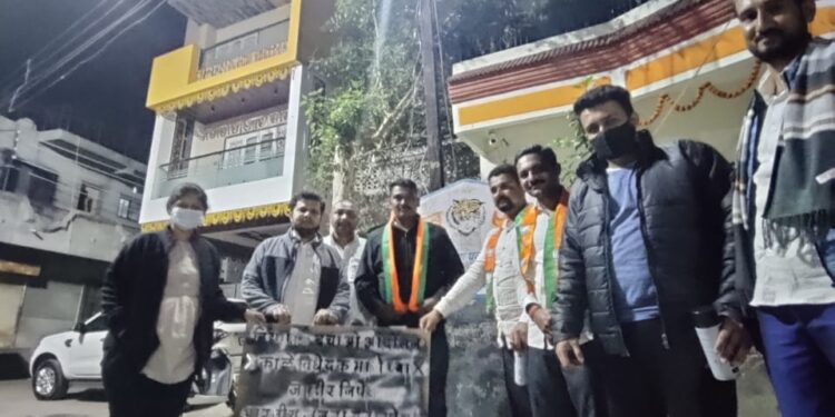 जळगाव राजमुद्रा दर्पण | विद्यार्थ्यांच्या भविष्याच वाटोळं करणारं विद्यापीठ कायदा सुधारणा विधेयक (काळे विधेयक) सरकारने त्वरित मागे घ्यावे या मागणी करिता जळगाव चे पालकमंत्री श्री.गुलाबराव पाटील यांच्या निवासस्थानासमोर निषेध रांगोळी काढून जळगाव भाजपा युवा मोर्चाने निषेध व्यक्त केला.