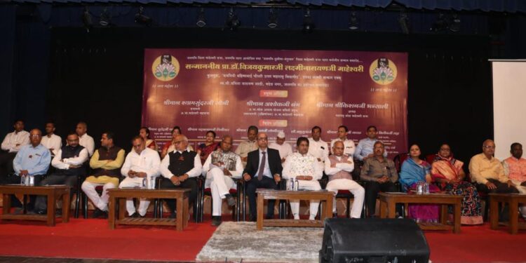 जळगाव राजमुद्रा दर्पण | शहरात माहेश्वरी समाजाच्या वतीने रविवार दि.३ एप्रिल २०२२ रोजी जळगाव, धुळे, नंदुरबार जिल्हा माहेश्वरी समाजातर्फे प्रा. डॉ.विजयकुमार माहेश्वरी यांची कवियत्री बहिणाबाई चौधरी उत्तर महाराष्ट्र विद्यापीठ चे कुलगुरू पदी निवड झाल्याबद्दल नागरी सत्काराचा कार्यक्रम आयोजित केला गेला होता. तसेच स्व.सौ. वनिता नारायण लाठी, महेश नगर, जळगाव याबद्दलची माहिती आणि प्रथम ५ इच्छुकांचे अर्ज स्विकारणे समारोह छत्रपती संभाजी राजे नाट्य मंदिर, महाबळ रोड, जळगाव येथे आयोजित केला होता.