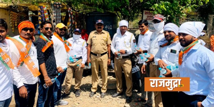 जळगाव शहरामध्ये सध्या 43, 44 अंश एवढे तापमान असून सर्वाधिक शरीरासाठी पाण्याची गरज आहे. मोठ्या प्रमाणात उष्णता च्या लाटा असून पाण्याची सर्वाधिक गरज असते. आणि अशा वातावरणामध्ये कर्तव्य बजावणाऱ्या पोलिस बांधवांना आहे त्या परिस्थितीत युवा मोर्चाच्या वतीने पाण्याच्या बॉटल उपलब्ध करून देण्यात आल्या आहेत.